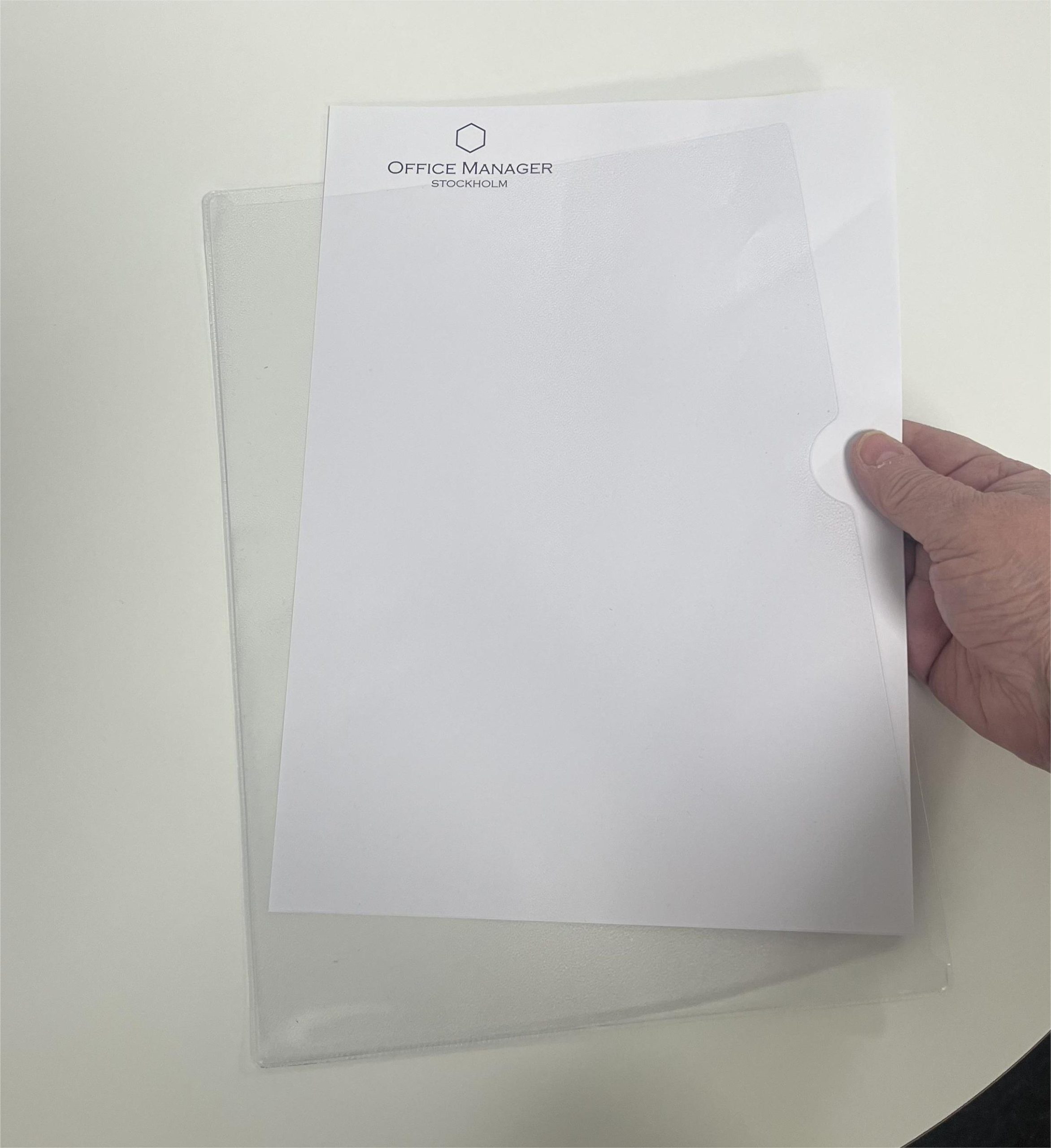 Håll ordning på dina viktiga dokument med denna aktmapp av kraftig präglad pvc. Öppen kort- och långsida och med tumgrepp. Dess köldtåliga egenskaper gör den lämplig för användning utomhus. Går att få med eller utan logga (enfärgad)
