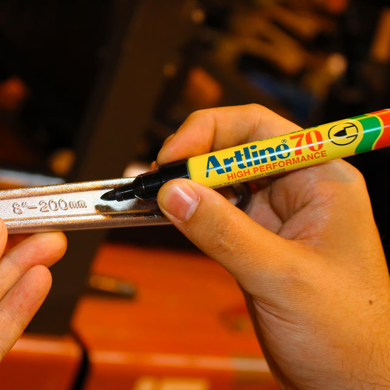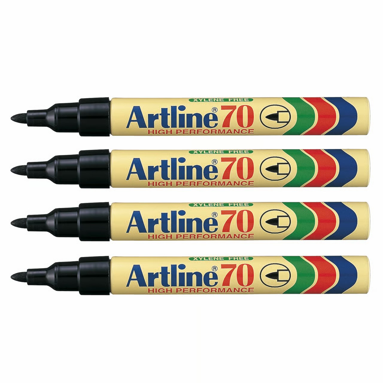 Svart permanent märkpenna med rund spets och 1,5mm skrivbredd. Snabbtorkade, vattenfast, aluminiumkropp, alkoholbaserat permanent bläck utan Xylen. Förpackningen innehåller 12 pennor.