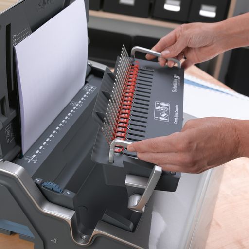 Robust inbindningsmaskin för plastspiraler som ger ett proffsigt resultat varje gång. Kan håla 28 ark (80g) och har en total bindningskapacitet på 500 ark med en maximal spiralstorlek på 50 mm. Passar både A4 och A5 storlek samt A3 på kortsidan. Tack vara den flytbara plattformen kan 2 användare håla och binda samtidigt. Praktiskt utrymme för förvaring av spiraler och papper. Inkluderar start kit för inbindning av 20 dokument. H/B/D: 152x526x446mm. Vikt: 10 kg. Maskinen har 2 års garanti.