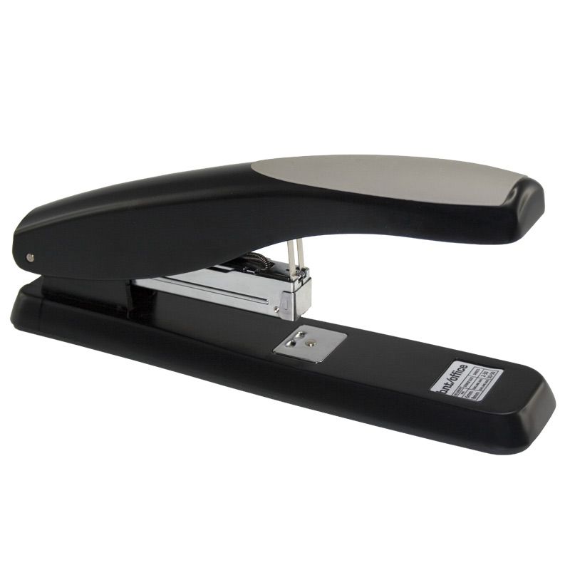 Häftapparat i helpressad plåt med gummidetaljer. Laddar 100 klammer, häftar med enkelhet upp till 50 ark. Mycket gedigen konstruktion i absolut högsta kvalitet. Ett patenterat frammatningssystem minimerar risk för vridningar eller blockering. Stabil och kraftfull häftapparat som kan laddas med följande klammertyper: 23/6, 24/6, 26/6, 12/6, 23/8, 24/8, 26/8 och 12/8.