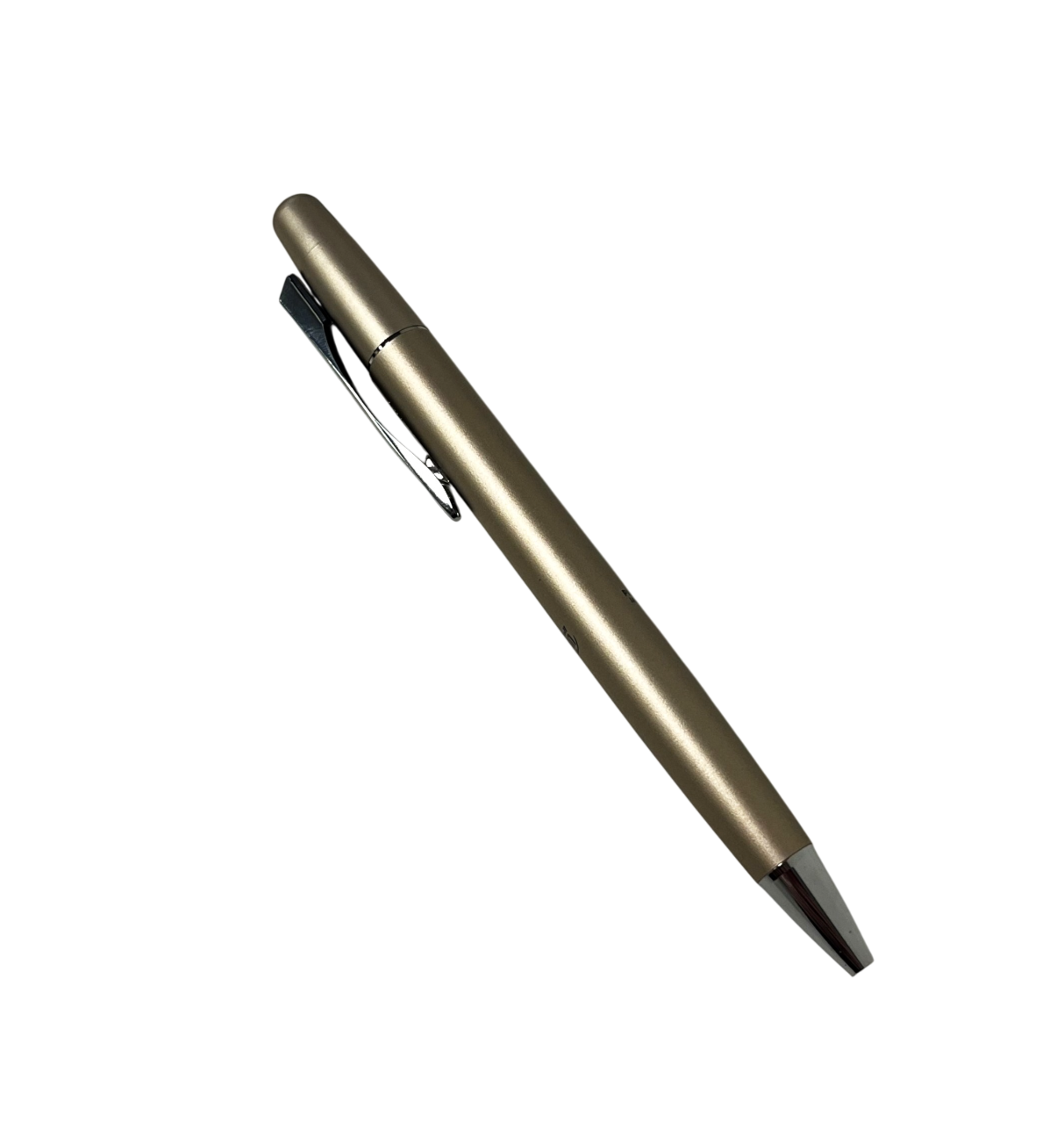Elegant raderbar kulspetspenna i borstad metall med klickmekanism. Den skrivna texten går att radera upp till 2 år. Blått bläck. Outslitlig radertopp. Levereras i presentask.