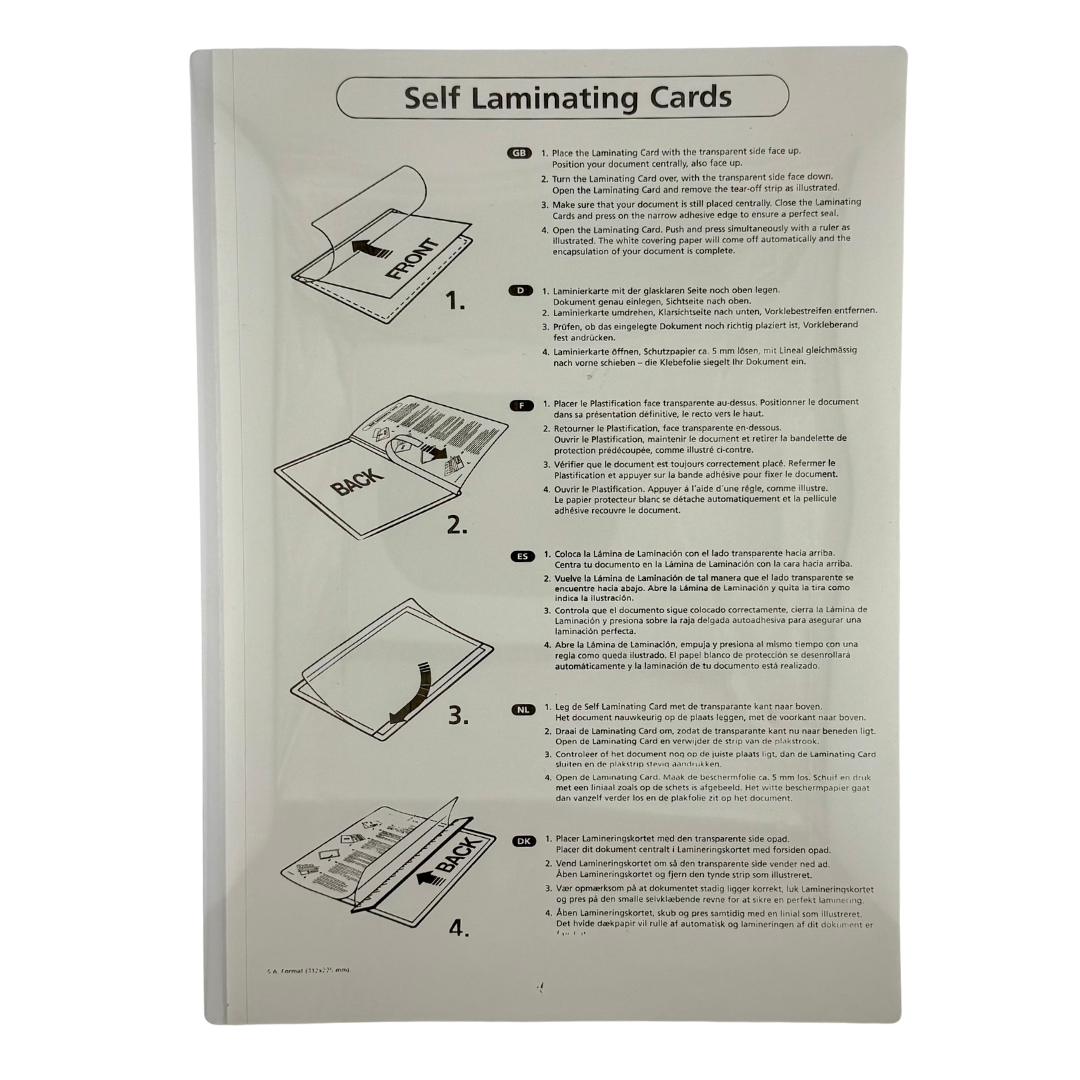 Lamineringsficka med glasklar fram- och baksida för A4-format. Kräver inte maskin.