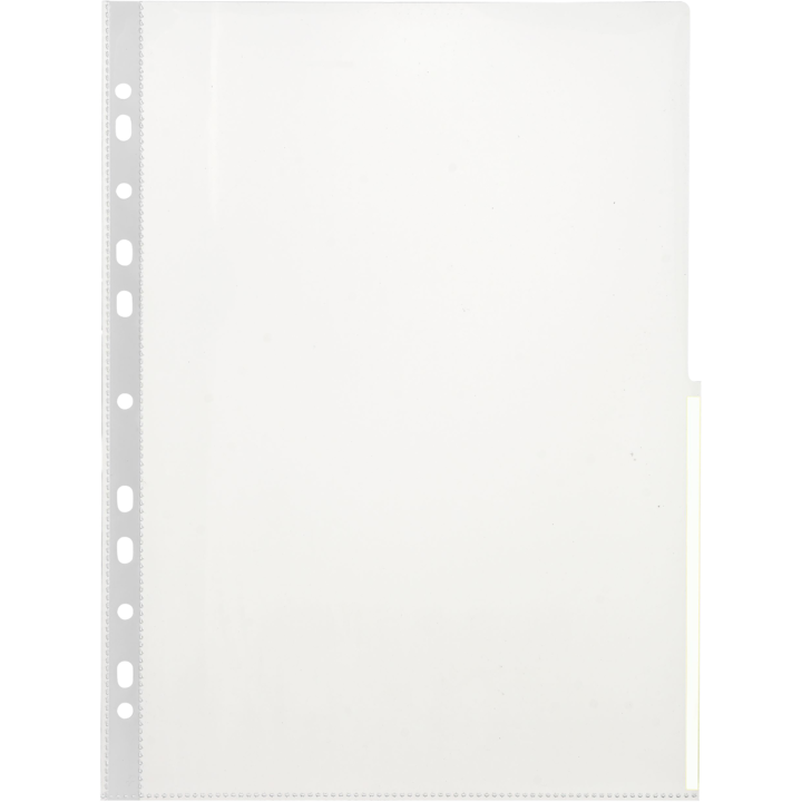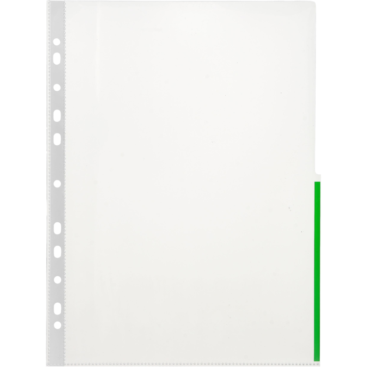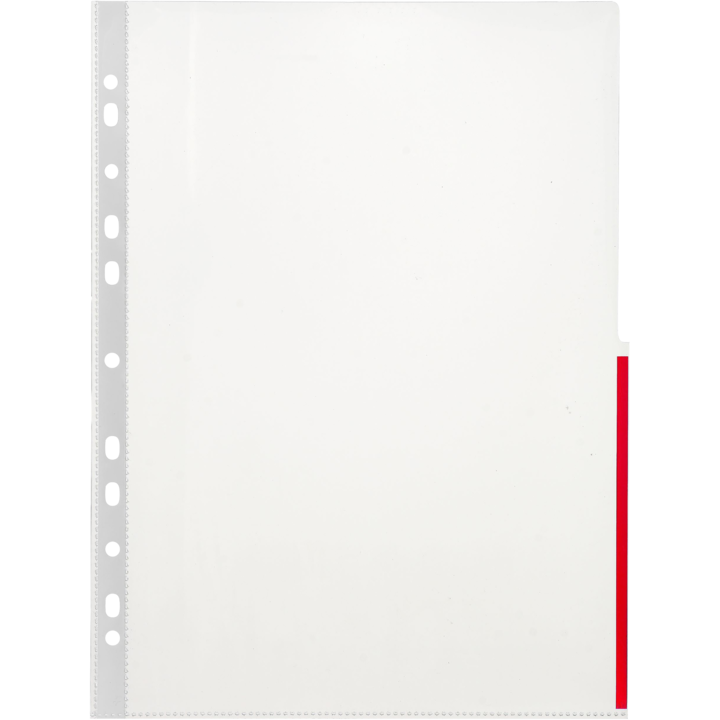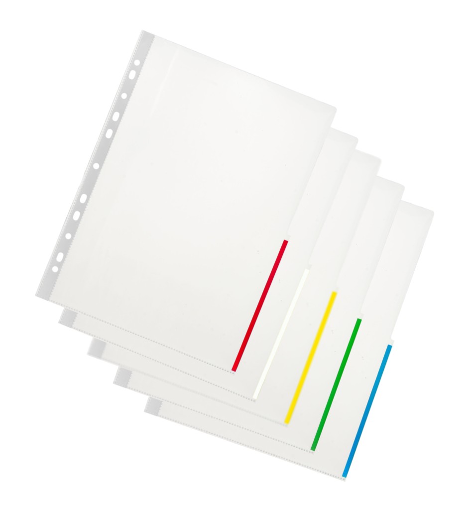 Plastficka anpassad för att förvara A4-ark. Färgkodad för att signalera innehållet. Med hållist för att sättas i pärm, A4.