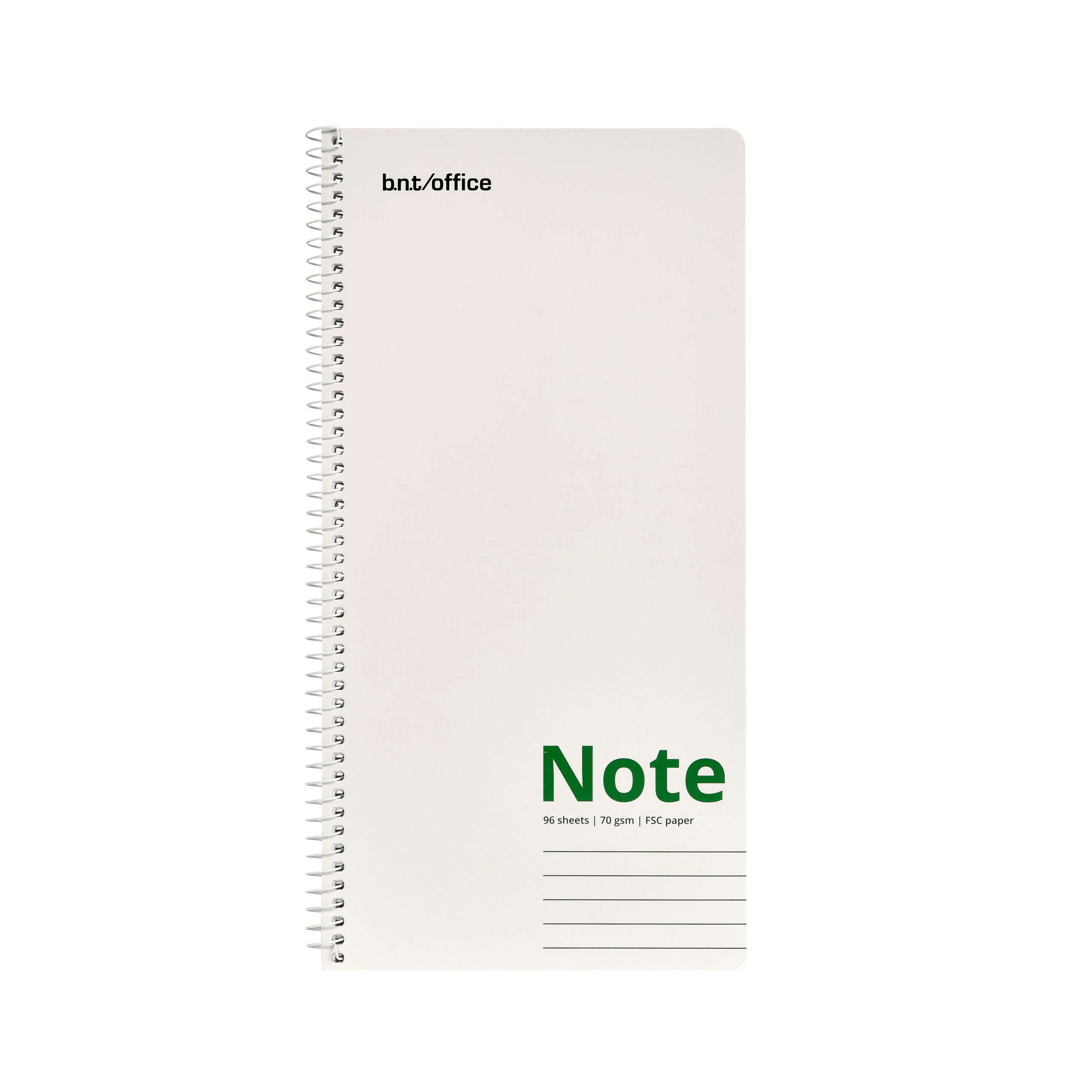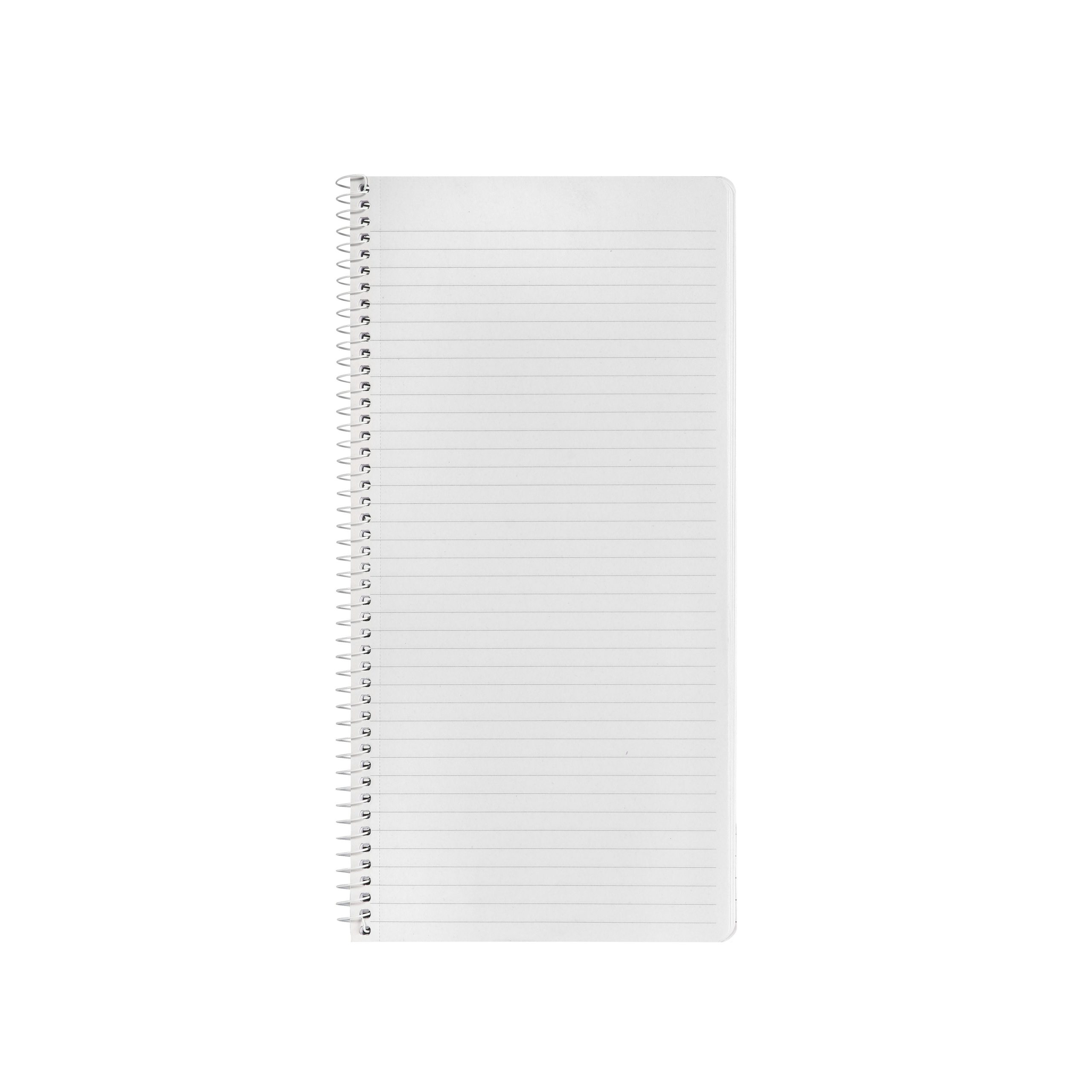 Linjerat spiralblock 148x295mm med vit sidospiral, 96 ark och 70g papper. Blocken är FSC märkta med vit fram- och baksida samt mikroperforerade papper. Detta block är smalare än ett vanligt A4 kollegieblock, vilket gör det lätt att bära med sig. Perfekt för anteckningar på kontoret.